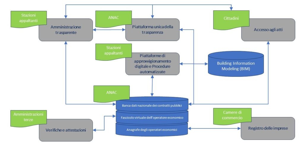 La Banca dati nazionale dei contratti pubblici, gestita dell’Autorità nazionale anticorruzione (ANAC), è un sistema centralizzato di raccolta delle informazioni relative a tutte le fasi del ciclo di vita dei contratti pubblici. È interoperabile con le Piattaforme di approvvigionamento digitale delle stazioni appaltanti e i sistemi informativi degli enti coinvolti nei diversi procedimenti attraverso la Piattaforma digitale nazionale dati (PDND). È integrata con la Piattaforma unica della trasparenza istituita presso l’ANAC.