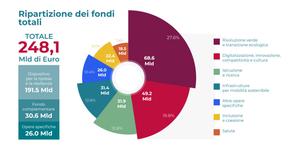 Il PNRR italiano mobilita risorse per 248,1 miliardi di euro, provenienti da: