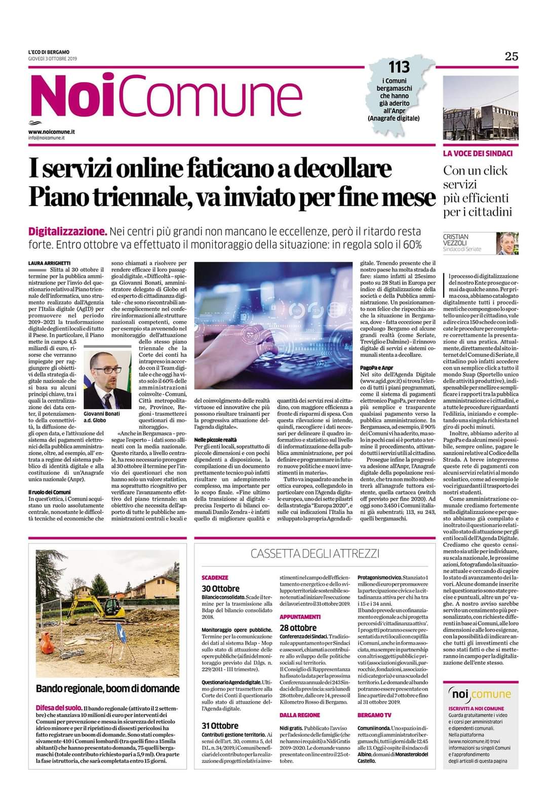 - L’Eco di Bergamo 15/03/2020 Comuni e imprese, il piano per la sfida digitale