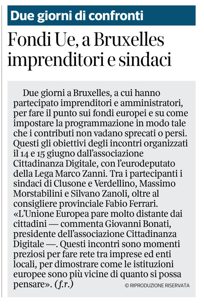 - L’Eco di Bergamo 14/06/2002 Fondi europei, incontro per enti locali