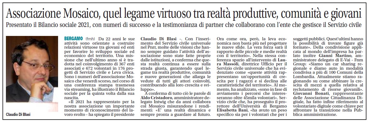 - Netweek InLombardia 17/11/2022 Associazione Mosaico, quel legame virtuoso tra realtà produttive, comunità e giovani