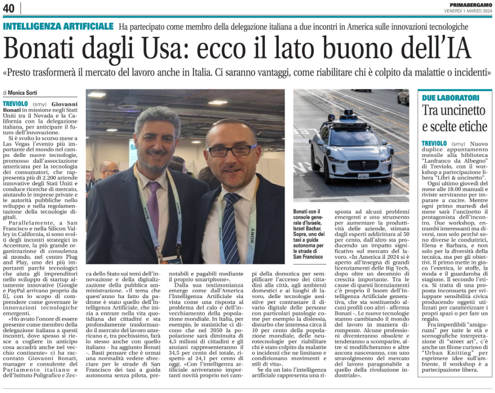 - Prima BERGAMO 11/03/2024 Bonati dagli Usa: ecco il lato buono dell’IA