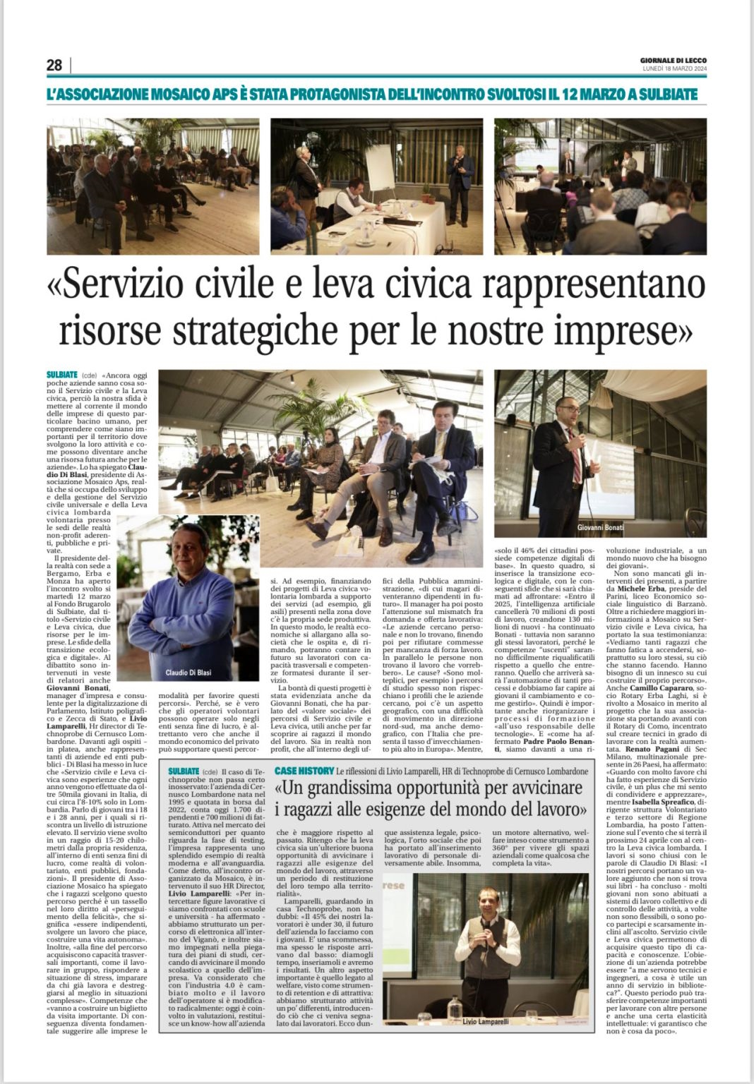 - Giornale di Lecco 18/03/2024 Servizio civile e leva civica rappresentano risorse strategiche per le nostre imprese