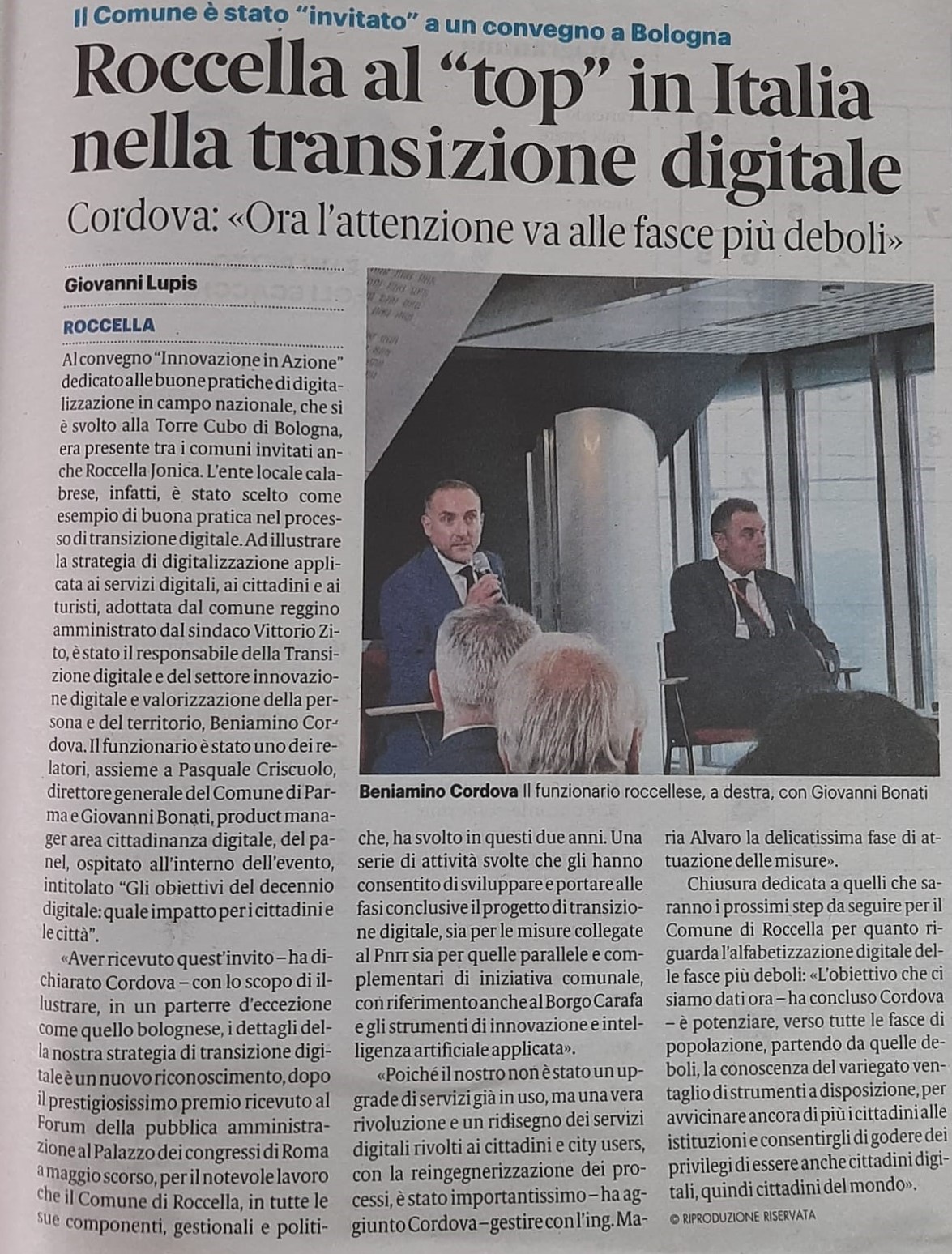- Gazzetta del Sud 27/09/2024 Roccella Jonica al “top” in Italia nella transizione digitale
