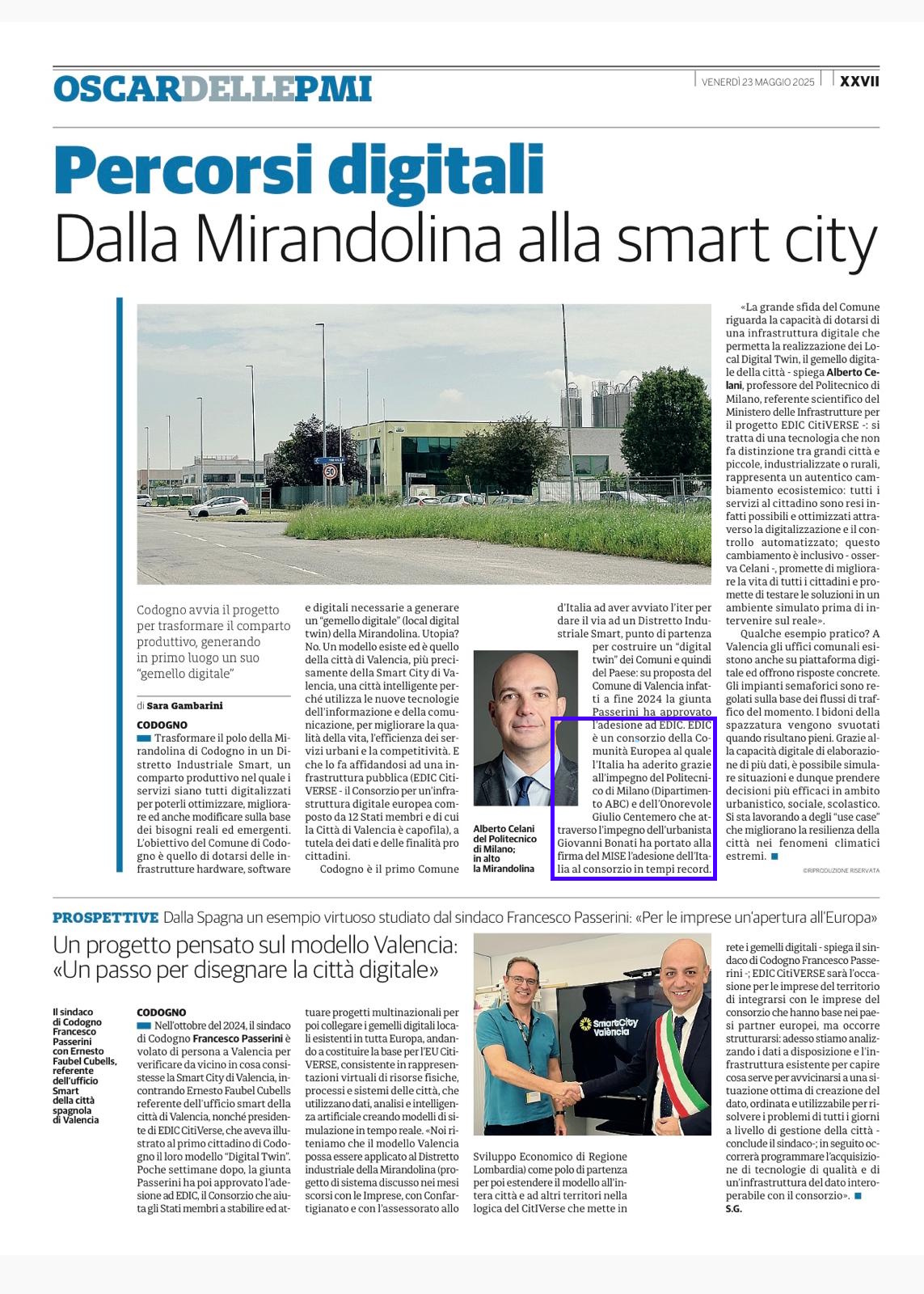 - Il Cittadino 23/05/2025 Percorsi digitali, dalla Mirandolina alla smart city